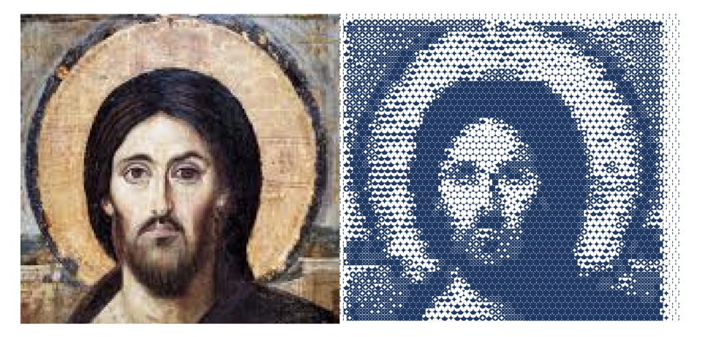 Samples the original image colour at each cell centre and applies it as a fill to every generated element. Works in all four modes. When unchecked, all elements are rendered in black.